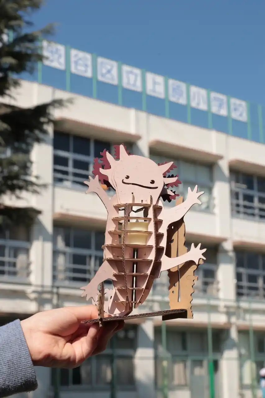 DAMBO合同会社は、渋谷区立上原小学校の令和7年度5年生とともに、2025年5月から約1年間にわたり、探究学習の時間を活用したプロダクト開発プロジェクトに取り組んできました。その成果として、絶滅危惧種ウーパールーパーをモチーフにしたルームランプ「ウーパーライト」を完成させ、2026年4月5日(日)に成果発表イベントを開催します。 |