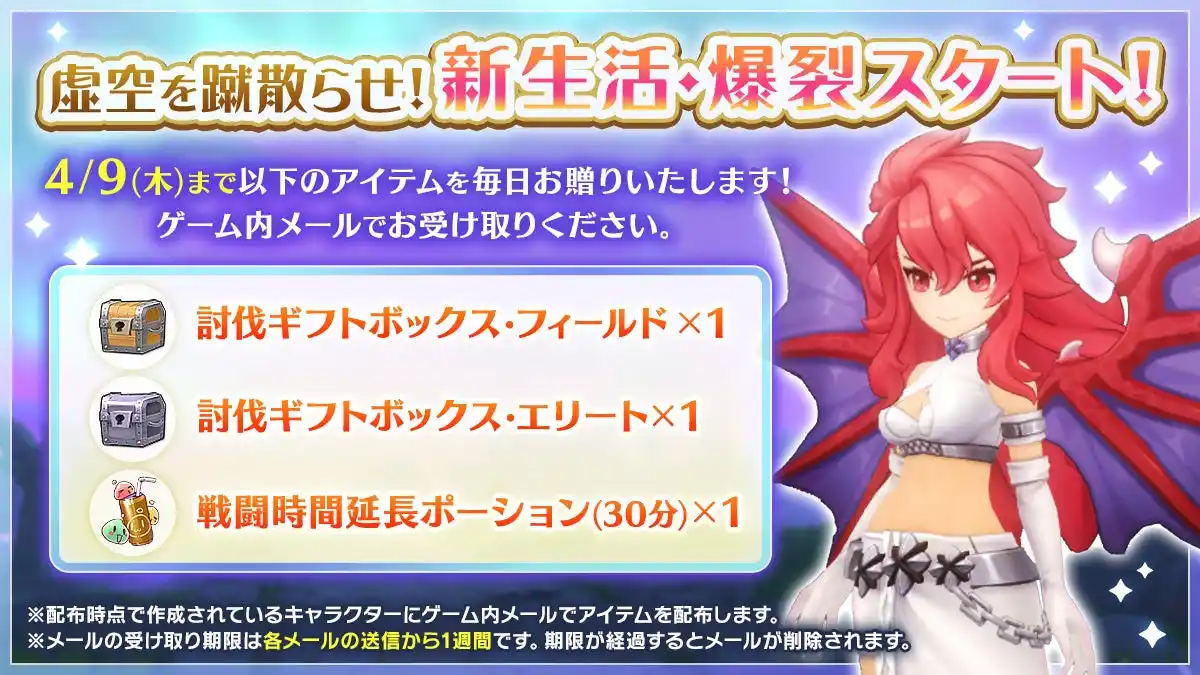 本イベントでは、豪華報酬が手に入るゲーム内メールの配布や、各種イベントを実施し、冒険者の皆様を応援します。 |