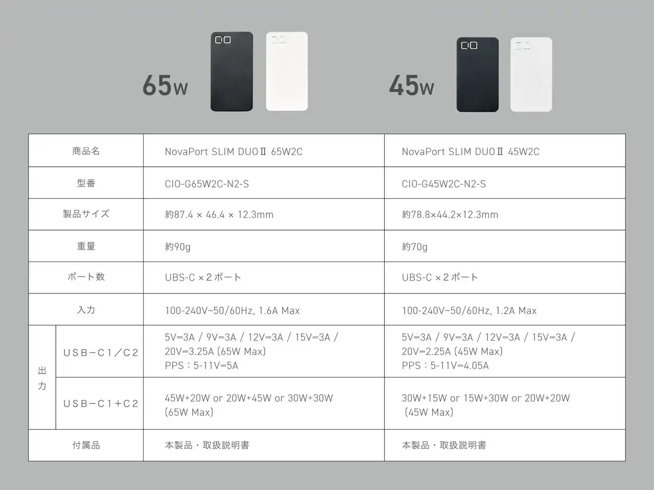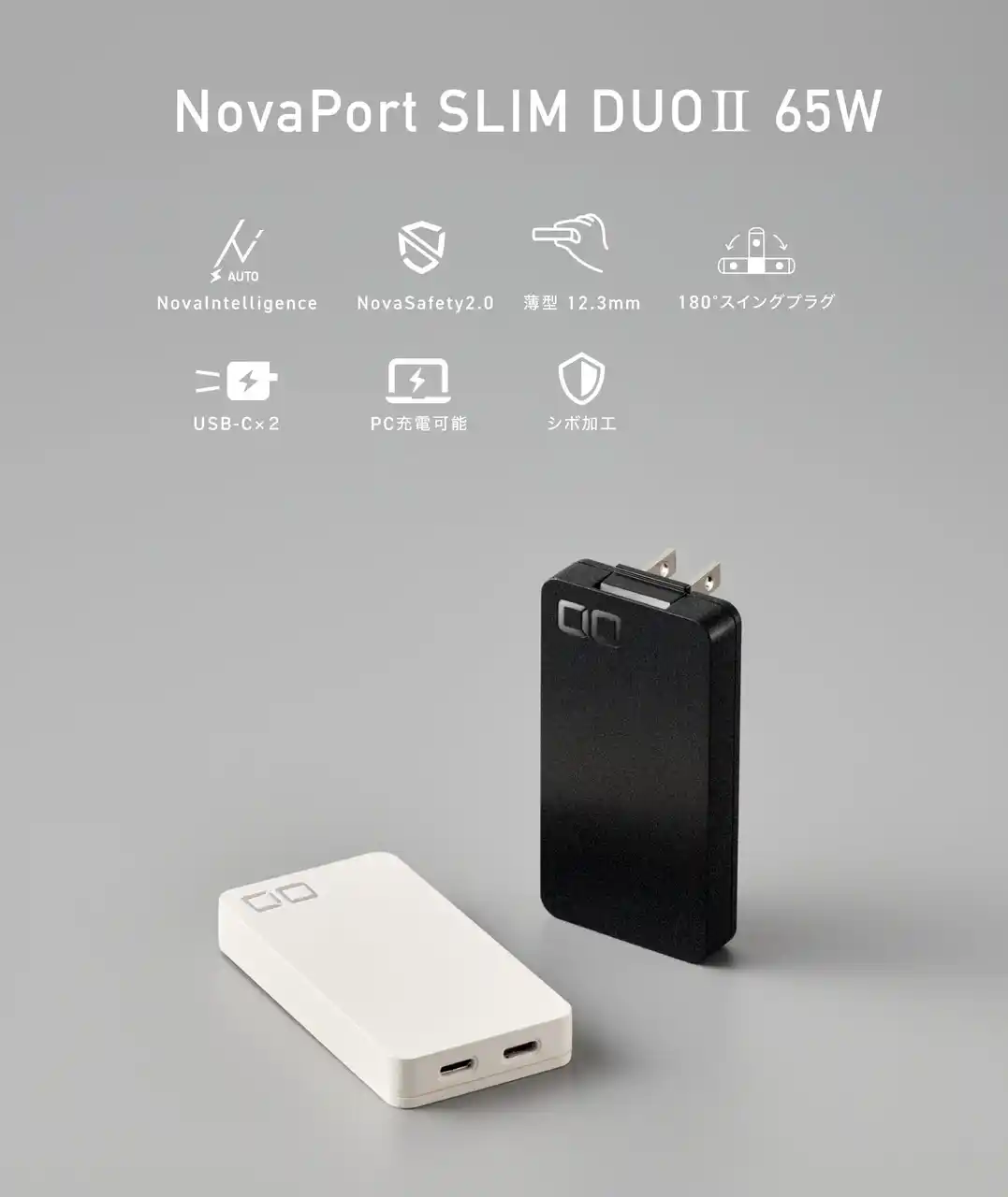 株式会社CIO(本社:大阪府守口市、代表取締役社長:中橋 翔大)は、180°開閉プラグを採用した極薄充電器『NovaPort SLIM DUOII 65W』および『NovaPort SLIM DUOII 45W』を、応援購入サービス「Makuake」にて、2026年3月31日(火)より開始します。 |