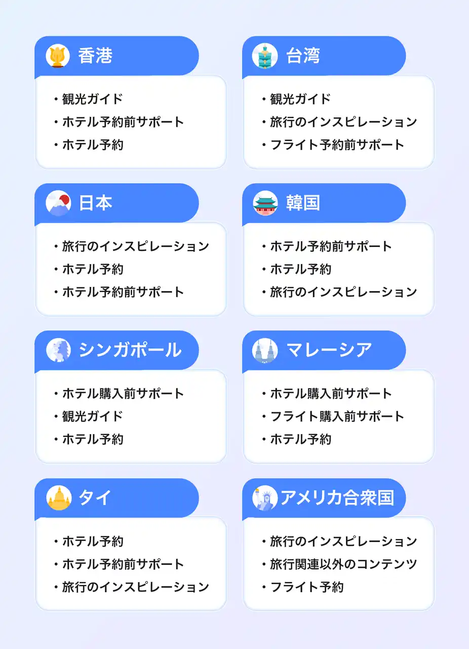 TripGenieは、グローバルなAI機能でありながら、各地域の旅行スタイルに適応する「ローカライズされた意思決定支援ツール」として進化を続けています。Trip.comは今後も、旅行者の多様なニーズに応じたAI体験の高度化を通じて、より安心で効率的な旅行体験の提供を目指します。 |