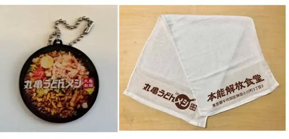 POPUP営業期間中、限定オリジナルグッズ「丸亀うどんメシでどこでも本能全開キーホルダーッ!」「丸亀うどんメシ本能全開・相棒タオルッ!」を商品1つのご購入につき、いずれか1つ、毎日先着200名さま限定でお渡しします。毎日各アイテム100個のご用意となります。お好きなグッズをお選びください! |