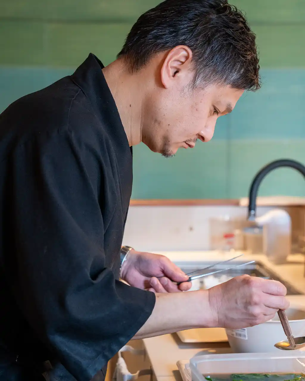 前菜は和食のシェフならではのメニューで、「菜の花」「ホタルイカ」「春キャベツ」といった春の食材から「う巻き」「あわび」など特別感を楽しめる内容でした。 |