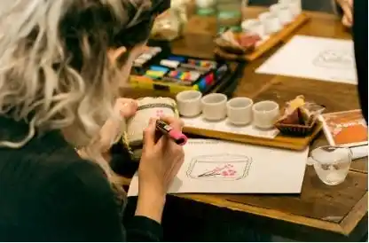 300mlのミニ菰樽(伝統的な酒樽)をデザインして、自分だけのオリジナル酒器にカスタマイズします。自分でデザインしたユニークなお土産を持ち帰ることができます。