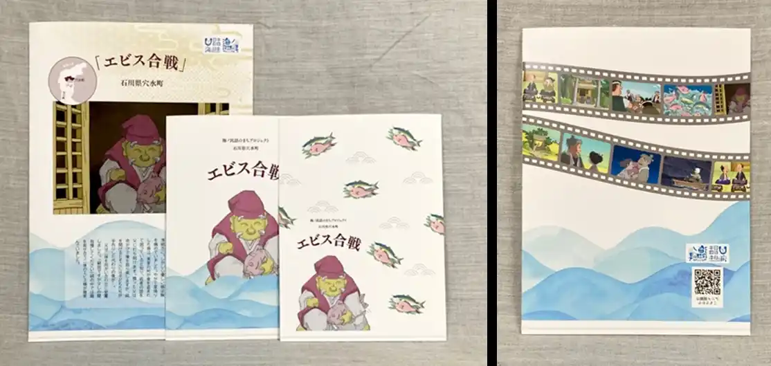 一般社団法人日本昔ばなし協会が推進する「海ノ民話のまちプロジェクト」では、石川県穴水町に伝わる海ノ民話『エビス合戦』のアニメーション完成を記念し、物語の世界観をデザインしたオリジナル「ペーパーホルダー」を発売いたします。本商品は、2026年4月11日(土)より、穴水駅に併設された「道の駅あなみず」にて販売を開始いたします。作中のキャラクターや象徴的なシーンをあしらった、日常使いしやすいデザインが特徴です。素材には海洋環境に優しい紙製を採用しており、手に取ることで紙の持つ温もりと穴水町の豊かな海や歴史に思いを馳せていただける一品となっております。本企画を通じて、より多くの方が穴水町を訪れ、民話『エビス合戦』に親しみを持っていただくことを願っております。 |