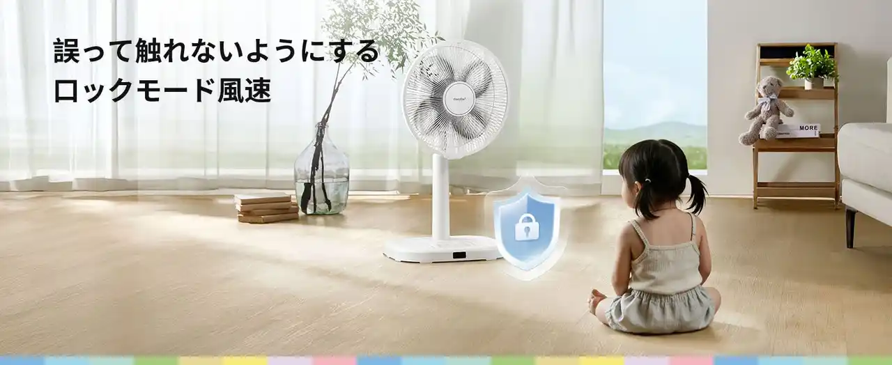 本体にはこども安心ロック機能を搭載しており、誤操作を防ぎ、風量やモードの設定を勝手に変更される心配がありません。ご家庭での使用はもちろん、お子さまがいるリビングや寝室でも安心してお使いいただけます。 |