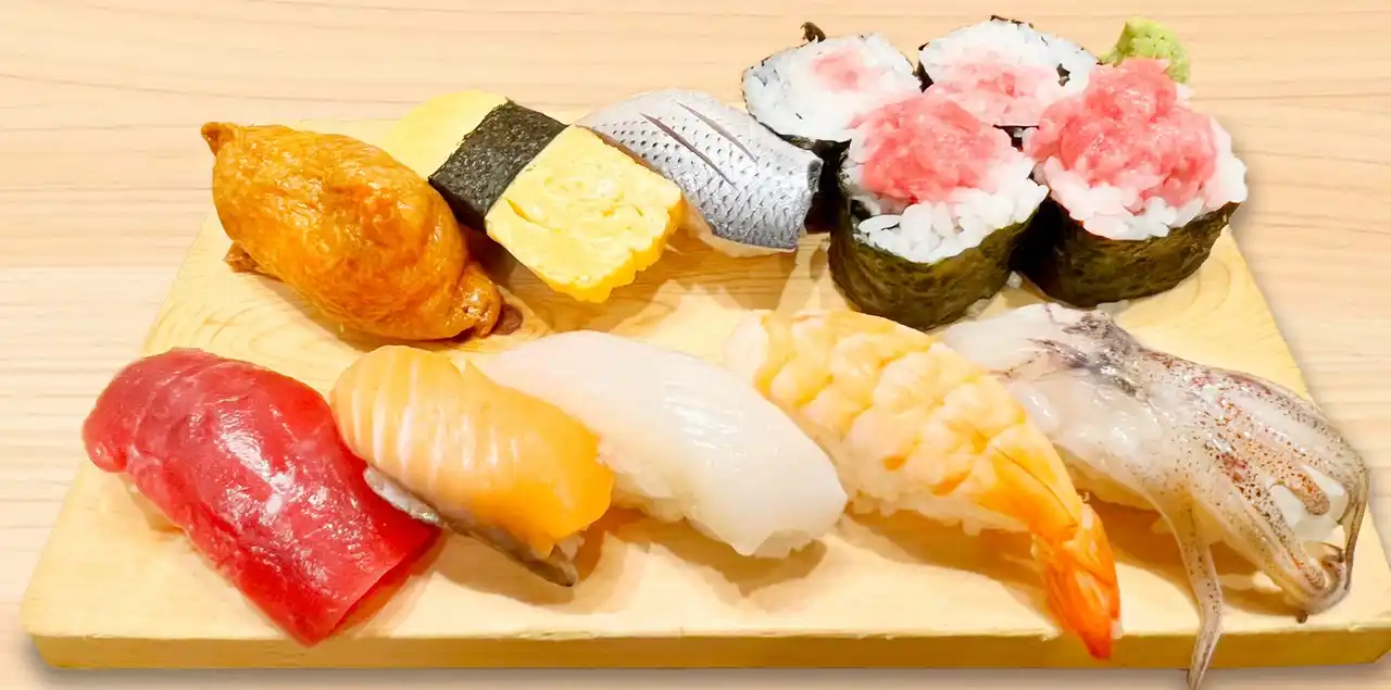 | 毎朝、目利きの仕入れスタッフが漁港から鮮魚を直送、全国各地の美味しい鮮魚と、神奈川県内でしか出回らない三崎の地魚がコスパ抜群で楽しめる寿司居酒屋「七福」戸塚店では4月2日(木)にテイクアウト限定にてワンコイン寿司(500円(税込))を販売いたします。8貫+巻物1本のご満足セットでございます。この機会にご利用ください。スタッフ一同、おもてなしと笑顔でお待ちしております。 | |||||||||||||||||||