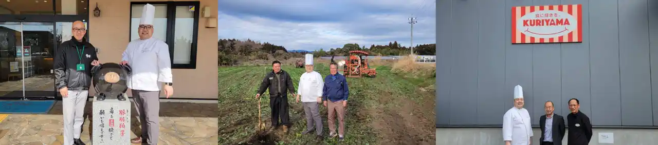 | 「九州・宮崎うまかもんフェア」の開催に先立ち、コンパスのシェフが九州・宮崎を訪れ、自らの目で食材を確かめてまいりました。宮崎ブランドポークを手がける「ミヤチク」では、美しい肉質ときめ細やかなサシの入り方を確認。飼育から出荷までの徹底した管理体制に、料理人として確かな信頼を感じました。日本有数の日照時間と昼夜の寒暖差に恵まれた「四位農園」では、実際に畑に立ち、力強く育った野菜本来の味わいを実感。 また、副生物を独自技術で加工する「栗山ノーサン」では、食材を最大限に活かす姿勢に、新たな発見がありました。生産者のみなさまと直接話し、一つひとつの食材に込められたこだわりを知ることで、「この味をどうお客様に届けるか」というシェフとしての想いが深まりました。現地で選び抜いた本物の味を、「コンパス」のブッフェでお楽しみください。 | |||||||||||||||||