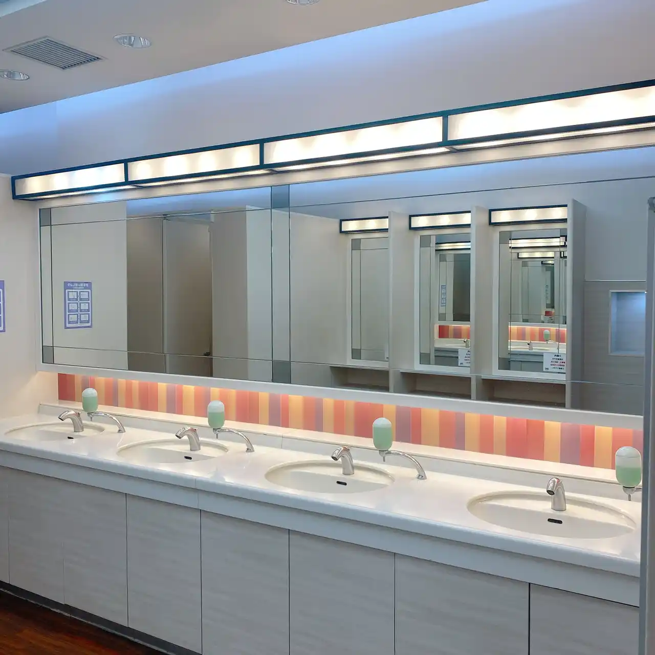 廃棄コスメに新たな命を吹き込んだ建材を、2Fの館内装飾の一部として採用いたしました。 |