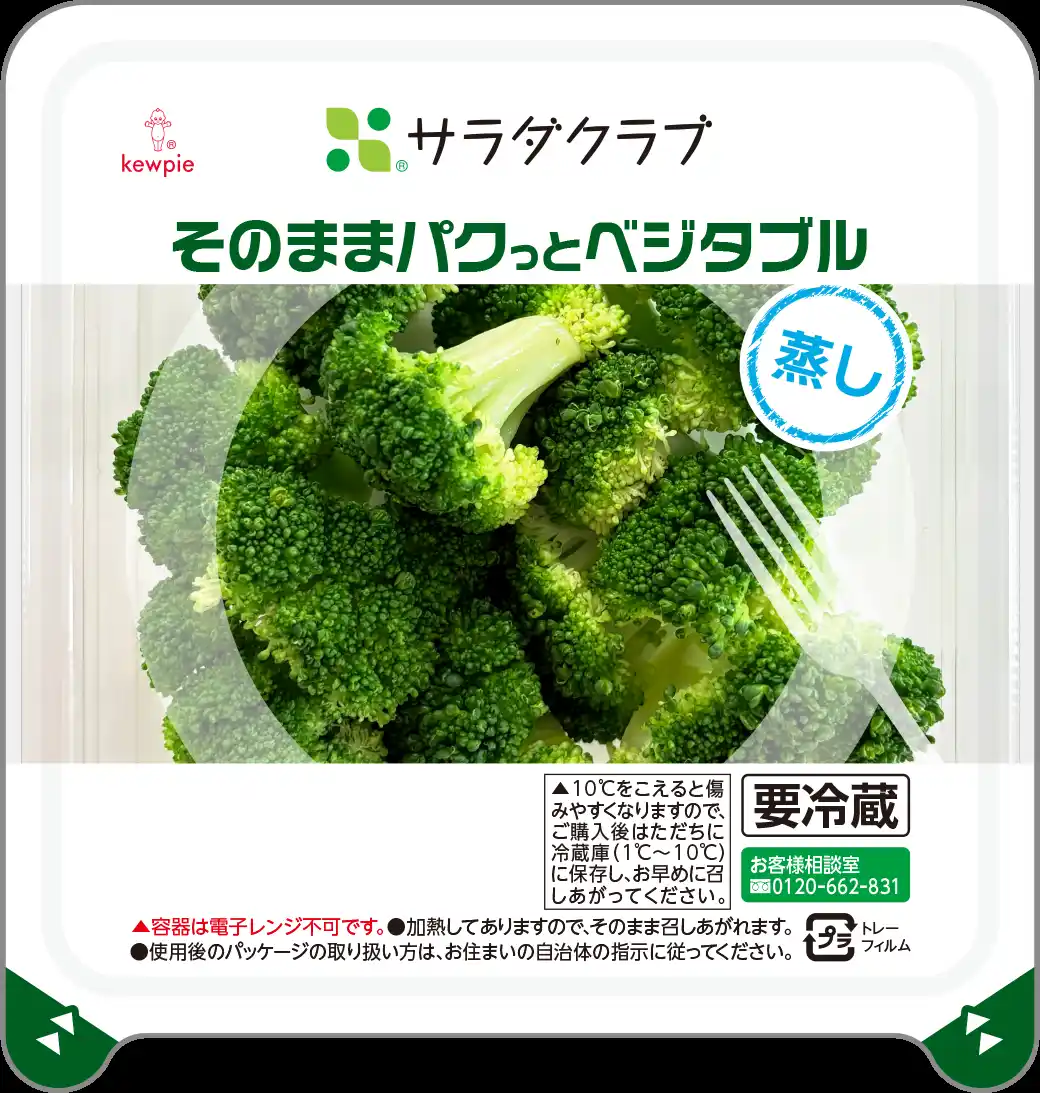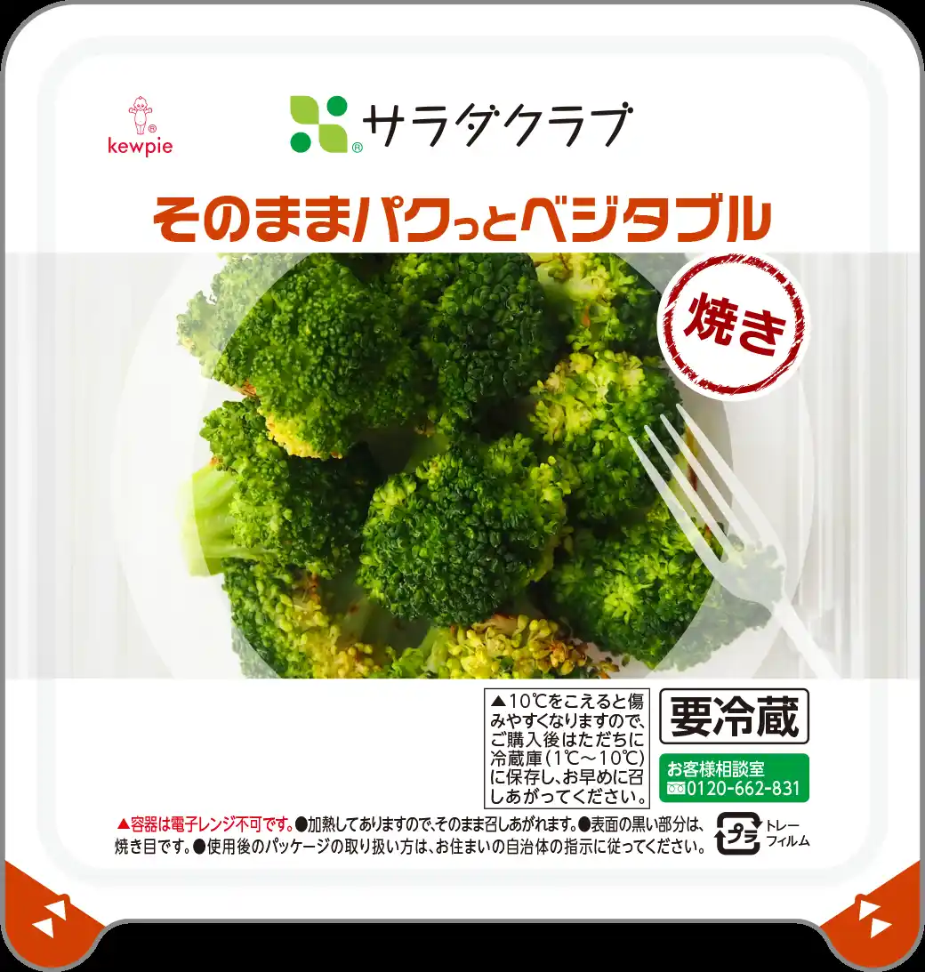 「そのままパクっとベジタブル」は、“野菜をもっと身近な食材に”という思いから生まれた新シリーズです。洗浄・カットに加え、「蒸し」「焼き」の加熱工程まですべて済ませており、開封後すぐに食べることができます。そのままはもちろん、サラダのトッピングや、夕食の副菜など、さまざまなシーンで手軽に使える汎用性が特長です。また、利便性と保存性が高いトップシール容器を初めて採用し、4日間の消費期限を実現しています。 |