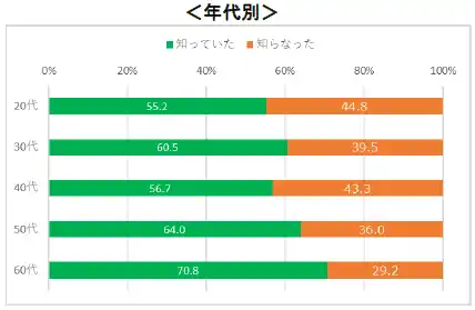 特に60代は70.8%と最も認知率が高く、注目度が高いようです。 |