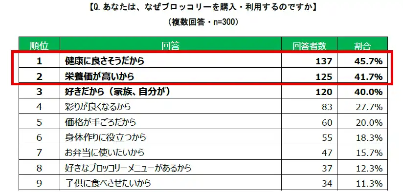 ブロッコリーの購入理由は「健康」「栄養価」が二大理由 |