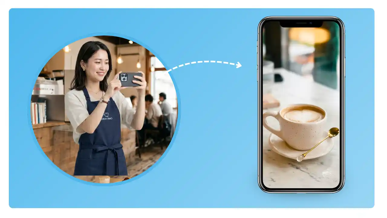 店舗オーナー様にしていただくことは、たった一つ。写真・動画を送るだけです。 |
