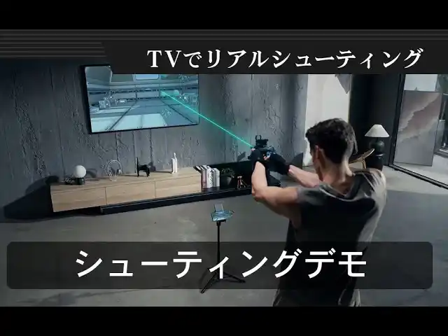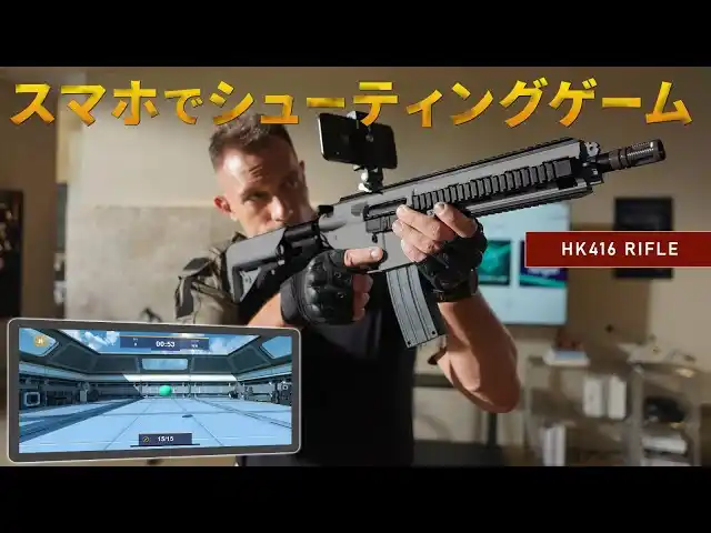 スマートフォンを銃に搭載して、銃の動きとスマホ画面が連動して射撃します。 |