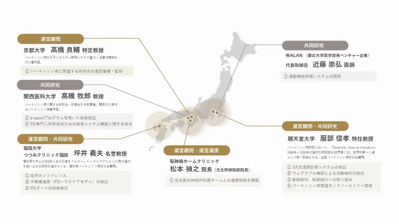 全国のパーキンソン病研究トップドクターと研究を進め、より効果的な新サービス創造を目指します。 |