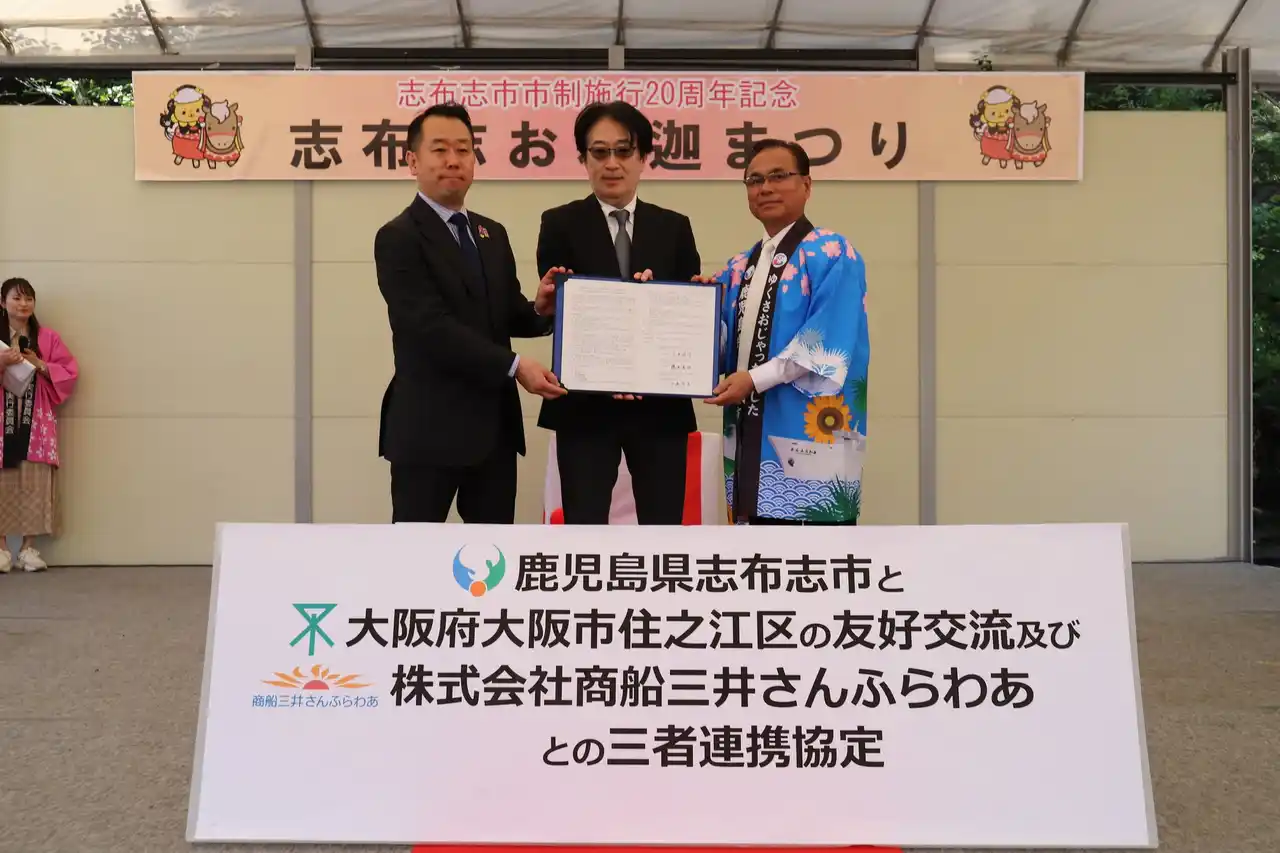 令和7年4月 志布志市・大阪市住之江区・株式会社商船三井さんふらわあによる三者連携協定締結 |