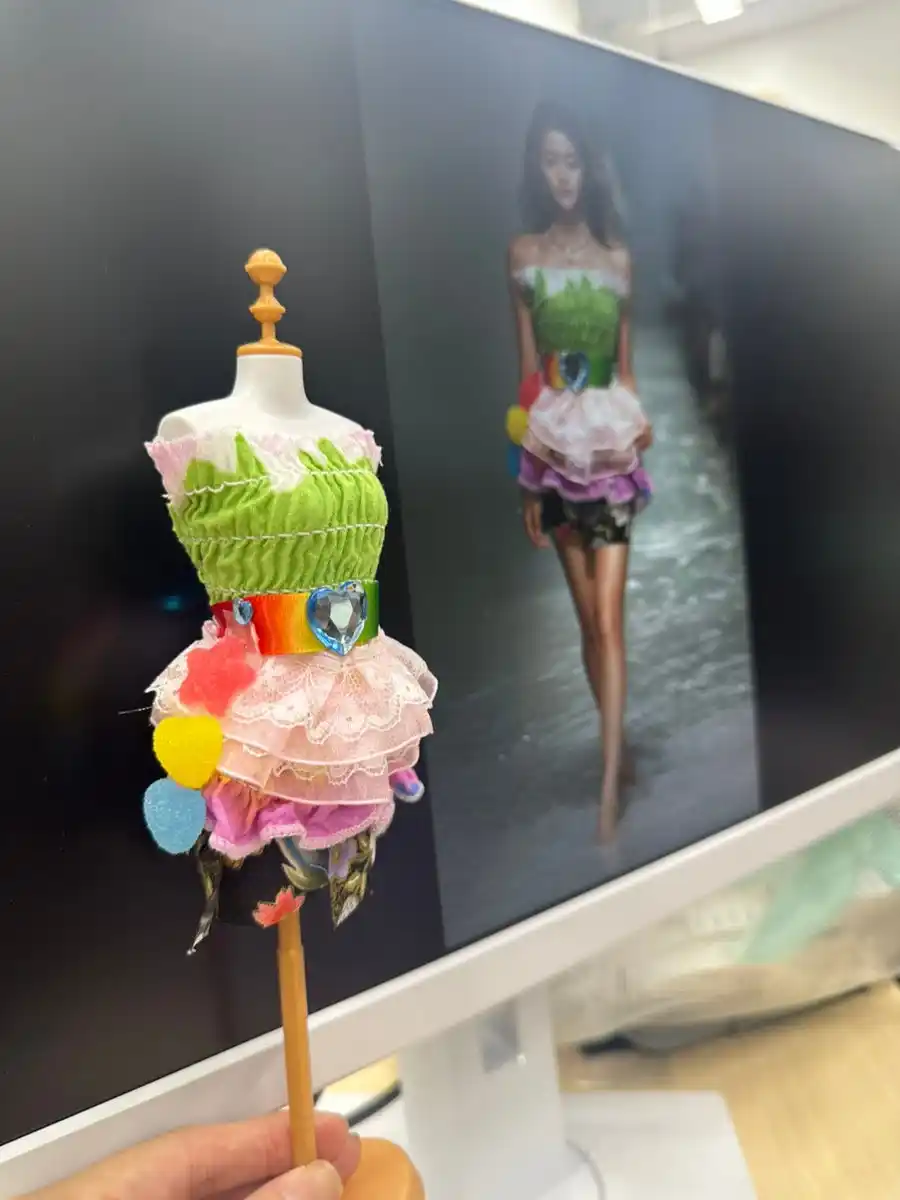 | 本プログラムでは、子どもたちがトルソー(立体ボディ)を用いて自由にデザイン制作を行い、その発想や造形をもとに生成AIを活用し、ファッションとして再構築しました。 | ||||||||||||||||