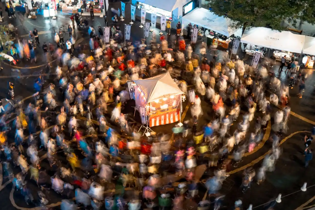 | 保存会メンバーによる圧巻の生唄・生演奏。都会の喧騒を忘れさせる、お囃子と下駄の音のセッションは必見です。今年も「もっともっと踊りたい」の声に応え、踊り時間を3時間にしています。 | |||||||||||