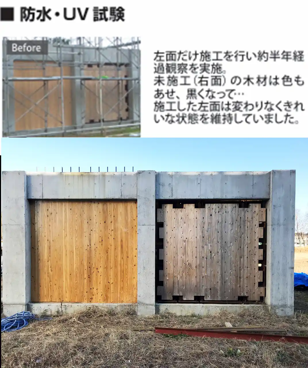 当社は、今まで難しいとされてきた木部のさまざまな問題を解決する「木部ソリューション」を開発し、木部を保護し、劣化を防止することで、建造物の長寿命化を可能にしております。「木部ソリューション」では、UVカットや防腐・防水効果を実現することで、木材の長寿命化に貢献いたします。 |