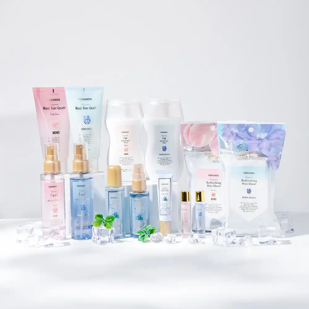 株式会社 FERNANDA JAPAN(所在地:神奈川県横浜市、代表取締役:流合貴之、以下、フェルナンダ)は、「クール コレクション」を2026年4月3日より数量限定で発売します。大人気の“マリアリゲル”と“モモ”の2つの香りに加え、今年は新たに圧倒的な清涼感を体感できる“マリアミント”が登場。夏を快適に彩る、全13アイテムでお届けします。 |
