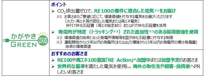 ■北陸電力の再エネ電気料金メニュー「かがやきGREEN RE100」の概要 |