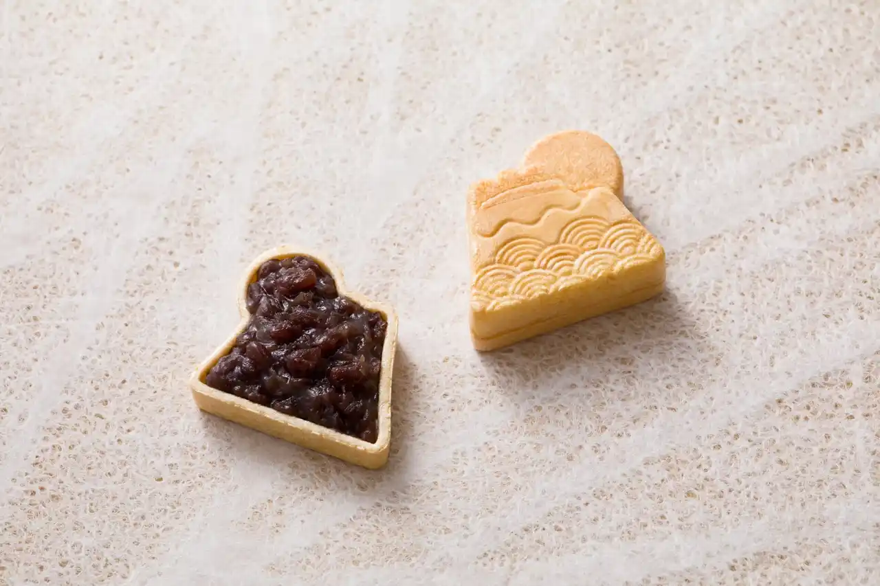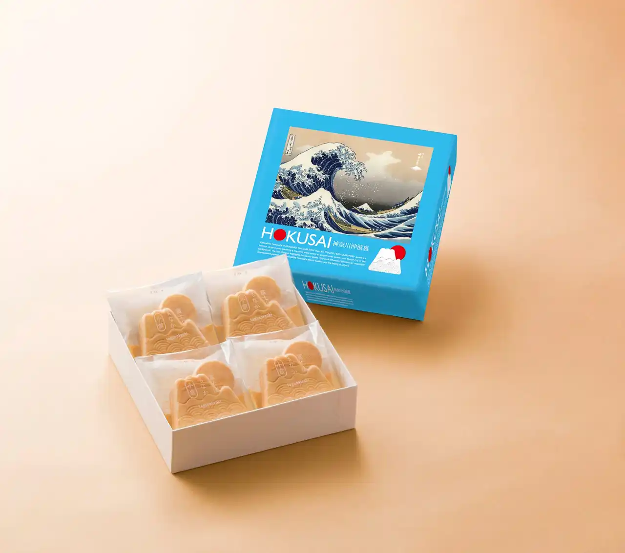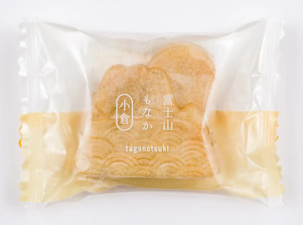 富士山の麓、静岡県富士市に本拠地を構えた老舗の御菓子庵「田子の月」の「富士山もなか」セット。北斎が描いた「神奈川沖浪裏」を包装紙にあしらった「もなか4個入(定価 1000円)」付きチケットです。 |