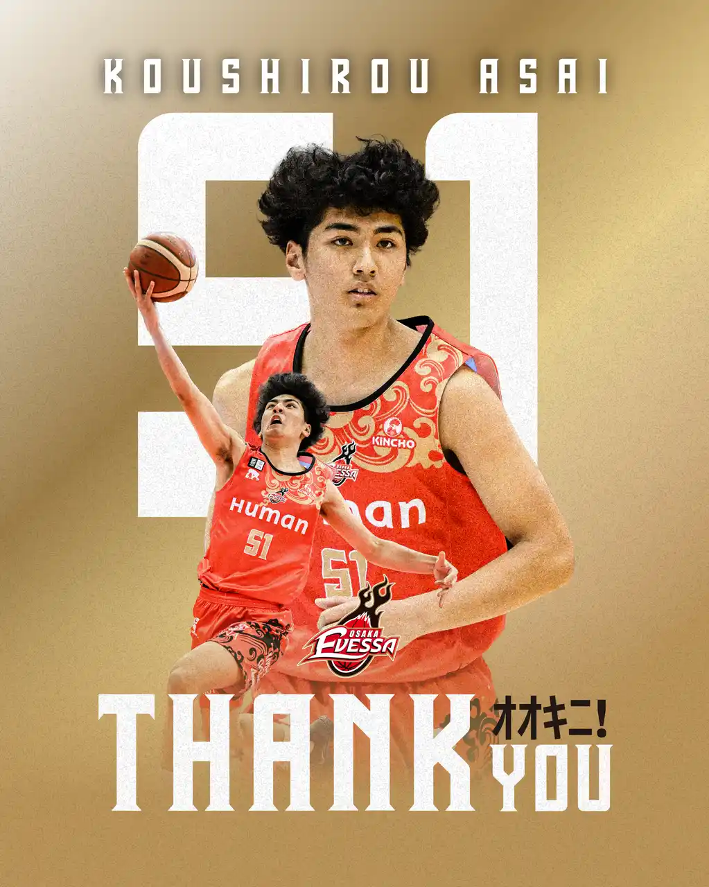 【大阪エヴェッサ】 浅井弘士郎選手 ユース育成特別枠選手 活動終了のお知らせ
