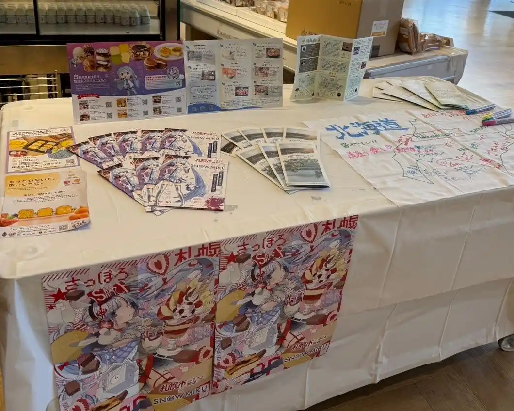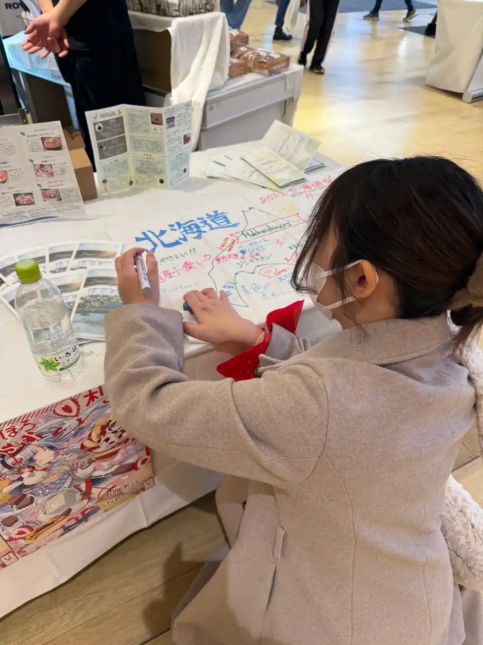 会場では、Hokkaidonorsの学生メンバーが主体となり、北海道の観光・食・地域の魅力を紹介する交流ブースも展開しました。観光パンフレットの配布や北海道マップへのメッセージ企画を通じて、来場者との会話が生まれ、北海道への関心を高める機会となりました。 |