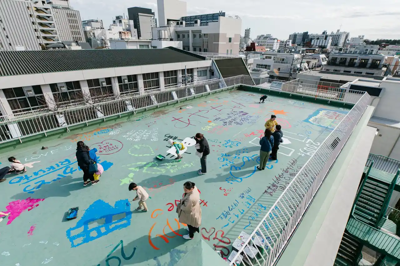 当日は、卒業生・在校生・保護者・地域住民を含む約600名が来場。創立以来約1万人の生徒の成長を見守ってきた西館の屋上や壁面に、参加者一人ひとりが「感謝」と「未来への想い」をペイントやペンで直接書き込み、世代を超えた共創の一日となりました。 |