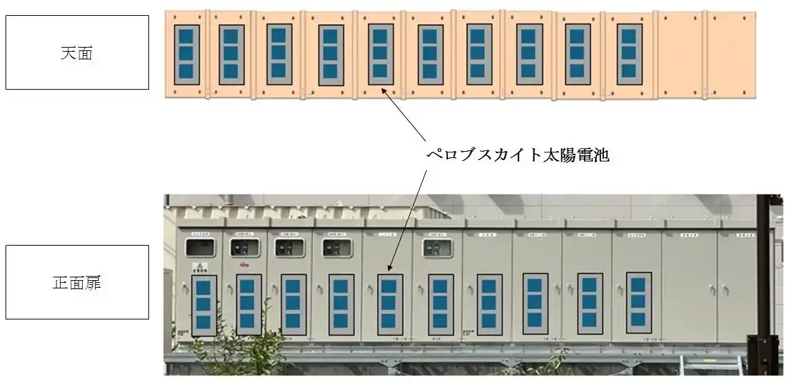 日東工業 瀬戸工場内の高圧受電設備の天面および扉面へ「ペロブスカイト太陽電池」を設置し、周辺設備の電源として活用します。 |