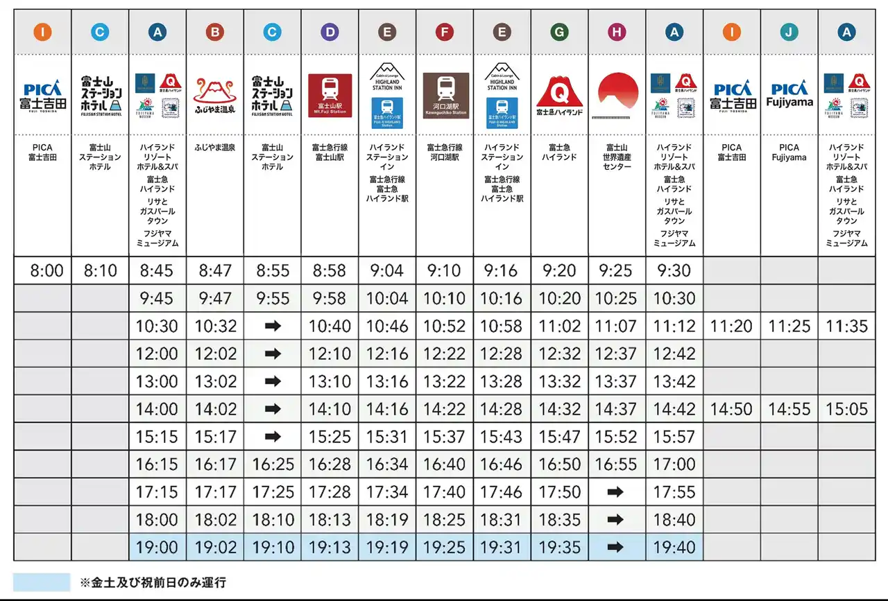 【PICA富士吉田 → (A)富士急ハイランド】 |