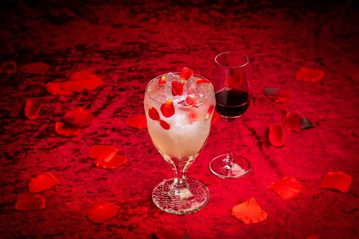 †晩餐会に咲き誇る深紅の薔薇 |
