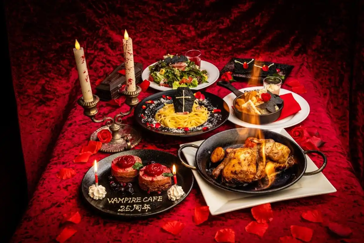 当社の1号店でもある同店の周年を記念して、周年月に先駆けた4月1日(水)より6月30日(火)までの期間限定で、「VAMPIRE CAFE 25周年晩餐会コース」2種及びオリジナルカクテル「25th アニバーサリーブラッド」を展開いたします。