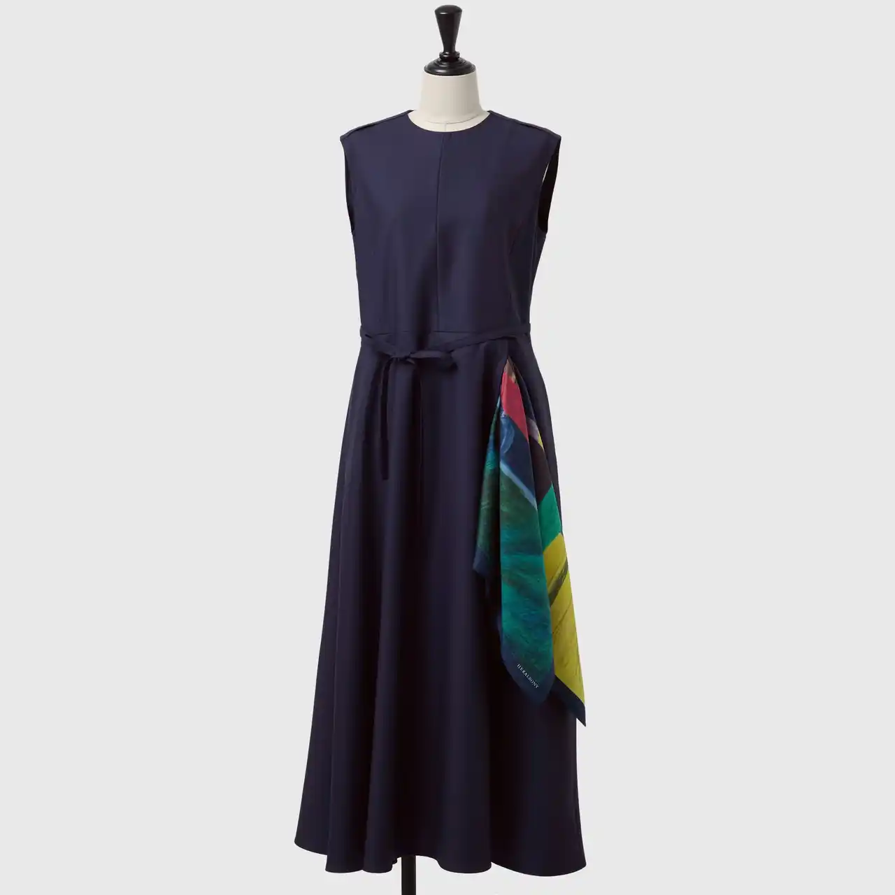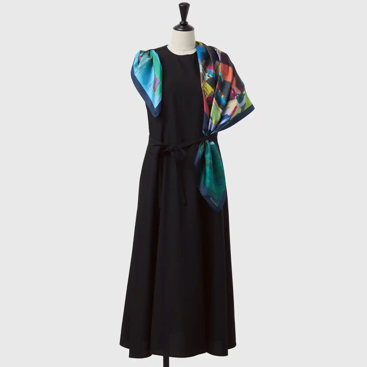 オケージョンシーンで自分だけの個性を放つ、スカーフをまとうワンピース。肩やウエストについたループにスカーフを通すだけで、あなただけのスタイリングが完成します。 |