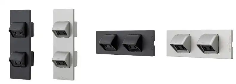 ● コンセント部と取付枠が分かれており、パーツ同士を組立てる構造となっているため、設置スペースに応じて縦型か横型をお選びいただけます。 |