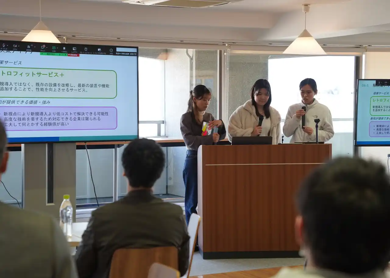 設備保全チームの高い技術力を活かし、他社工場の課題解決を支援する新規事業の検討を実施しました。学生によるインタビューや市場調査を重ね、既存の強みを活用したサービスモデルの構築と需要検証を行い、新たな事業の方向性を提示しました。 今後は、本プロジェクトで検討した設備保全の強みを活かしたサービスモデルについて、具体的な提供内容の精緻化と実証を進め、事業化に向けた検討を深めていきます。また、外部企業への展開可能性を検証しながら、新たな収益機会の創出を目指します。 |