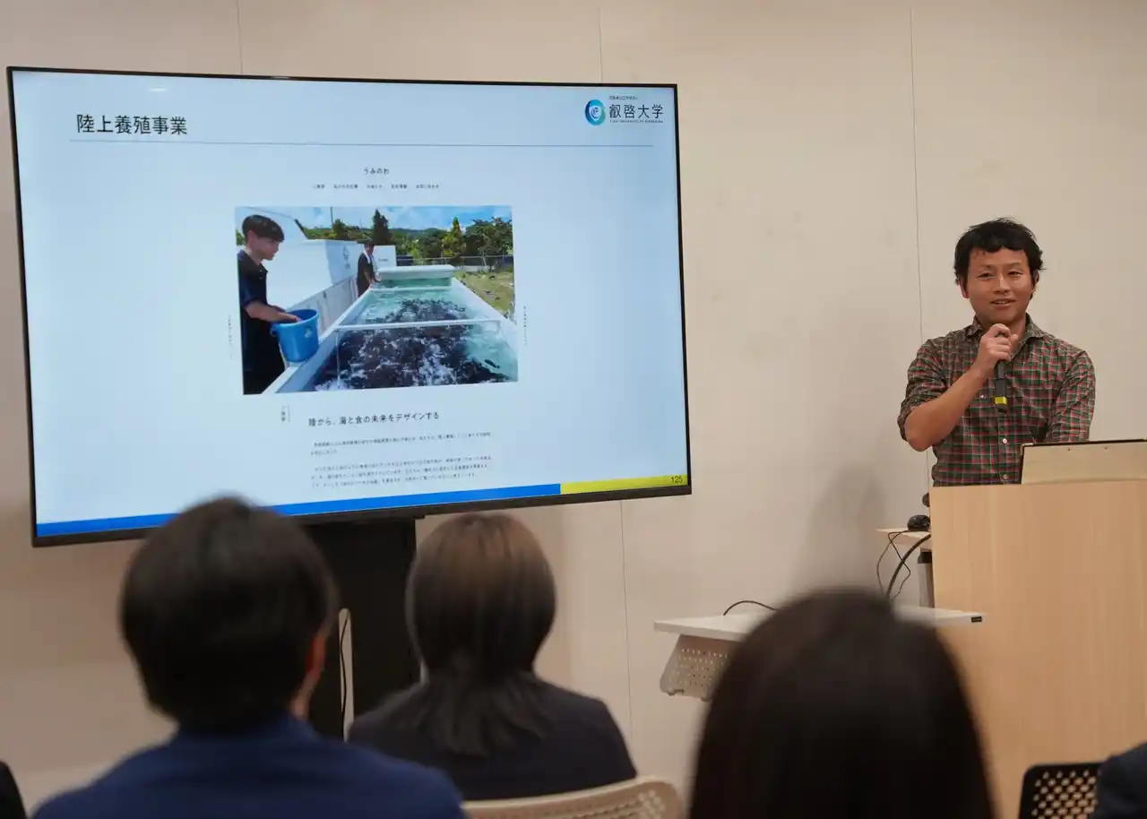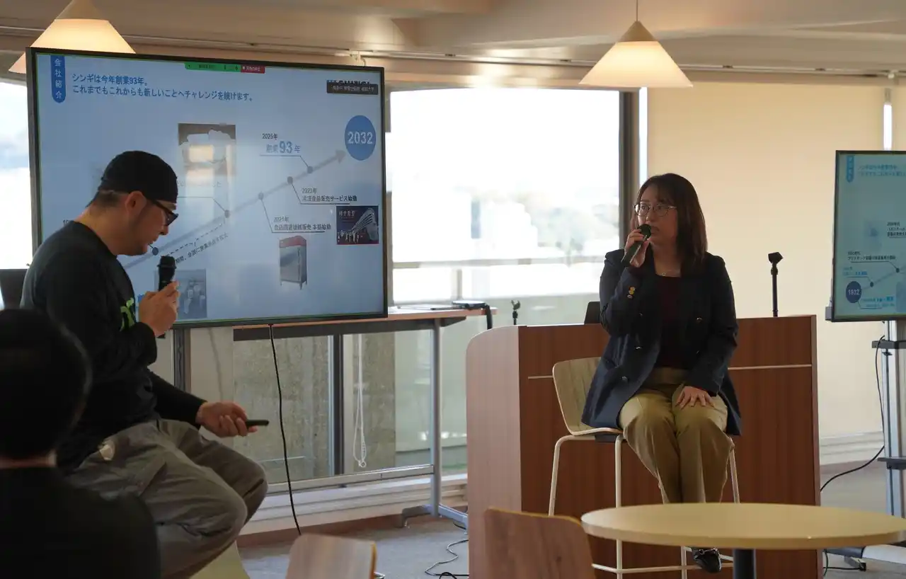 共創プロジェクトでは、まず上半期参加企業である株式会社シンギへのインタビューを実施し、プロジェクトを通じた変化や事業化への展開について共有されました。 特に、資源循環をテーマとした取組から、大学発ベンチャー設立へとつながった経緯が紹介されました。 |