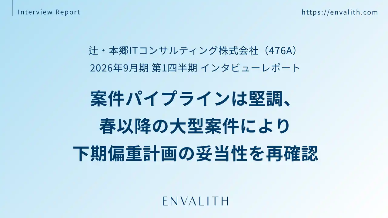 次世代型の株式リサーチ・プラットフォームを展開する株式会社エンヴァリス(本社:東京都渋谷区、代表取締役社長:河井 浩一、以下「当社」)は、辻・本郷ITコンサルティング株式会社(本社:東京都渋谷区、代表取締役社長 黒仁田 健、証券コード:476A、以下「辻・本郷ITコンサルティング」)の2026年9月期 第1四半期 インタビューレポートを配信いたしました。 |