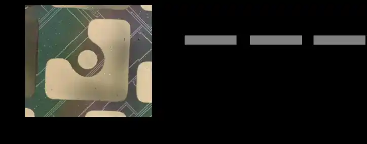 | 今回、当社は独自開発した成膜技術であるPhantom SVD法により、ルチル型二酸化チタン(r-TiO2)(001)基板上にr-GeO2薄膜を作製、イオン注入プロセスでアクセプタ不純物を膜中に導入し、活性化アニールを実施しました。r-GeO2膜表面に金属電極を形成することで、その電気特性を評価しました。図1に作製・評価したサンプルの外観を示します。活性化アニールを実施したことでr-GeO2膜表面にクラック(結晶膜の亀裂)が発生しています。 | |||
