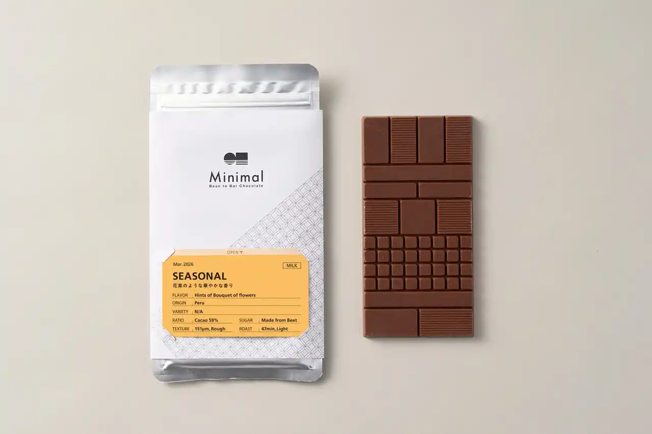 | 株式会社βace(東京都渋谷区、代表取締役:山下貴嗣)が展開する、日本発のスペシャルティチョコレート専門店 「Minimal - Bean to Bar Chocolate - (ミニマル)」( https://mini-mal.tokyo/ )は、2026年4月1日より、春限定の「SEASONAL ダークミルク ペルー59%」を富ヶ谷本店・麻布台ヒルズ店・仙川店・オンラインストアにて販売します。 | |||||||||