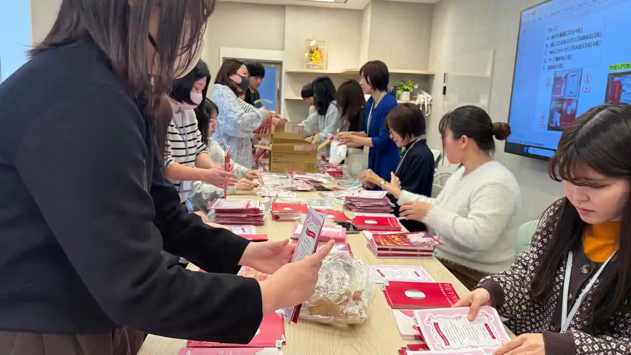 | 当日はまず、キープ・スマイリング理事長・光原ゆき様より活動の背景や趣旨についてご説明いただき、その後240セットのラッピング作業に着手。社員が一丸となって取り組んだ結果、限られた時間の中でラッピング作業を無事完了。参加した社員からは「参加して良かった」との声が多く上がり、大変有意義な機会となりました。 | |||||||||