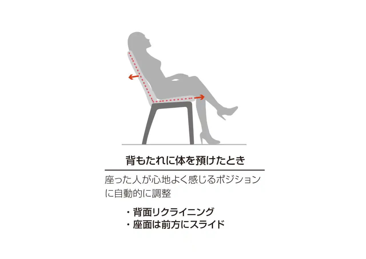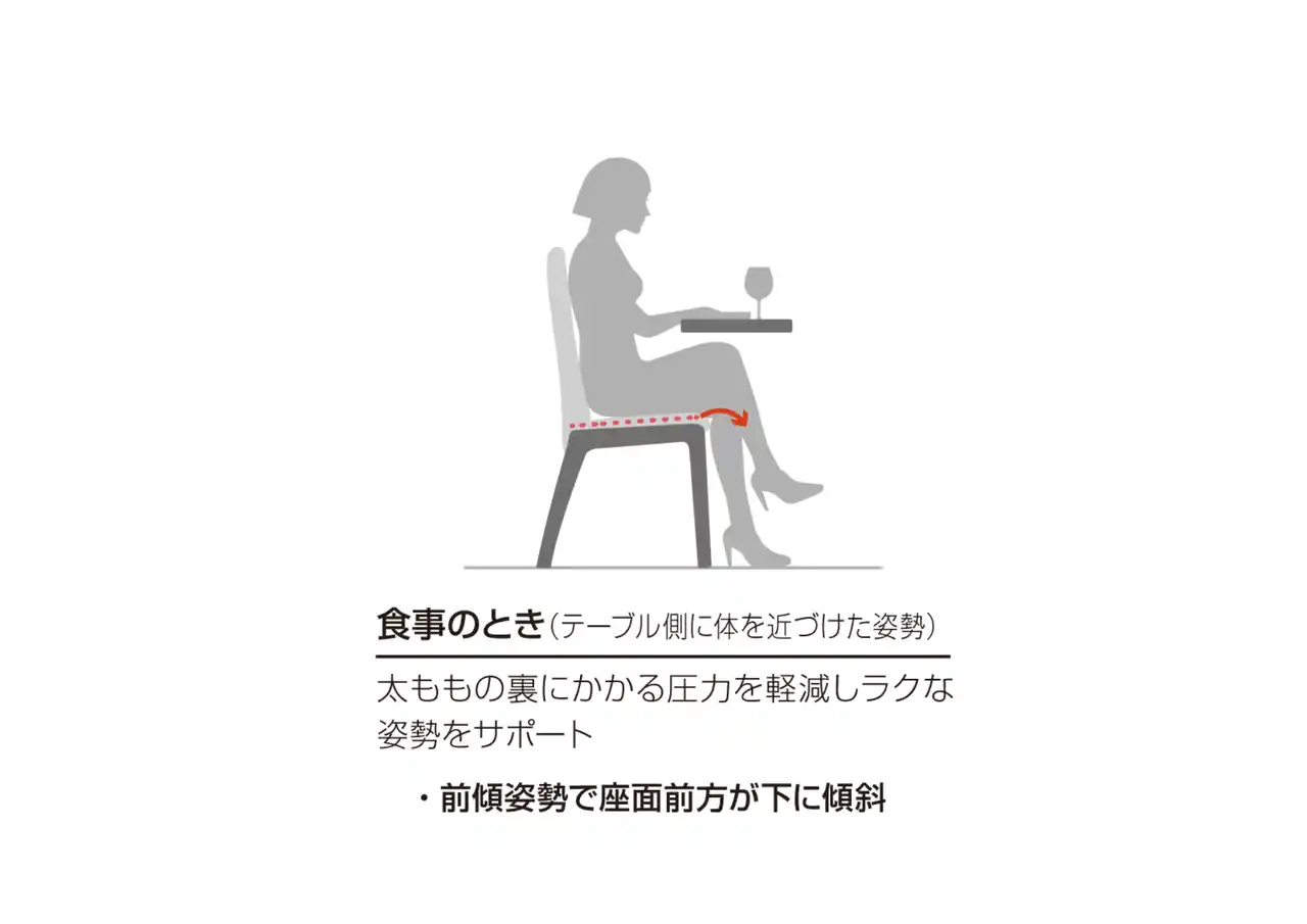 座面が下がり体圧を分散し、長時間座っていても疲れにくい |