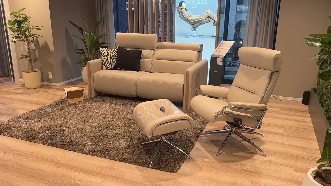 店舗には、ストレスレス(R)製品の構造・機能・サイズ選びに精通した 「ストレスレス(R)アドバイザー」 が常駐しています。アドバイザーは、体格や座り方の癖、生活動線、設置空間などを丁寧にヒアリングし、豊富な展示モデルの中から最適なサイズ(S・M・L)や張地、背もたれの高さ、脚部デザインまでを総合的に提案します。専門知識に基づく細やかなサポートにより、「長時間座っても疲れにくい、自分だけの一脚」 に出会える点が、アドバイザー在籍店ならではの大きな魅力です。 |