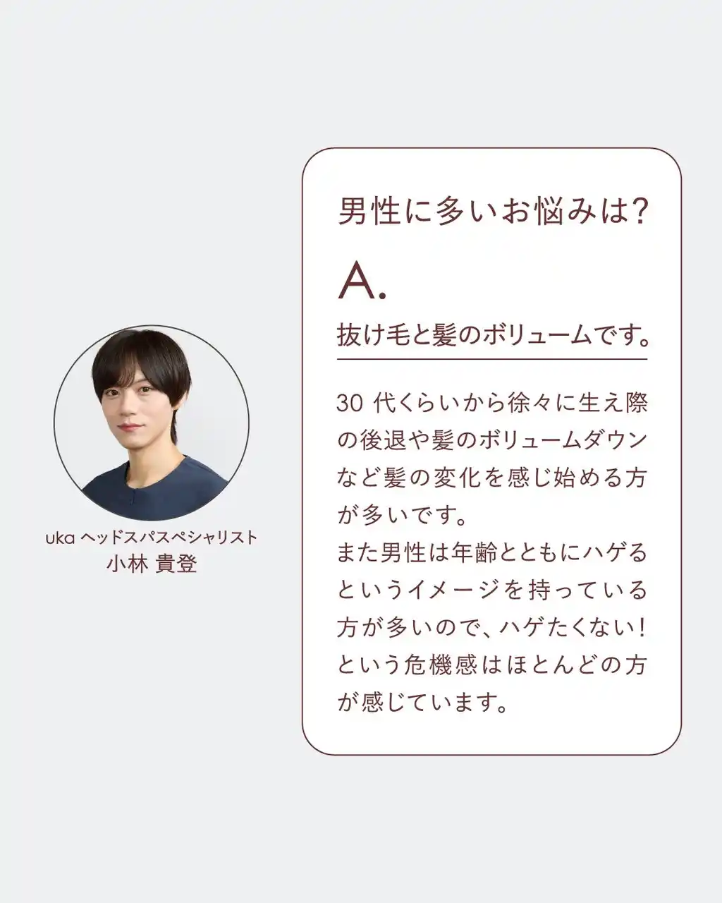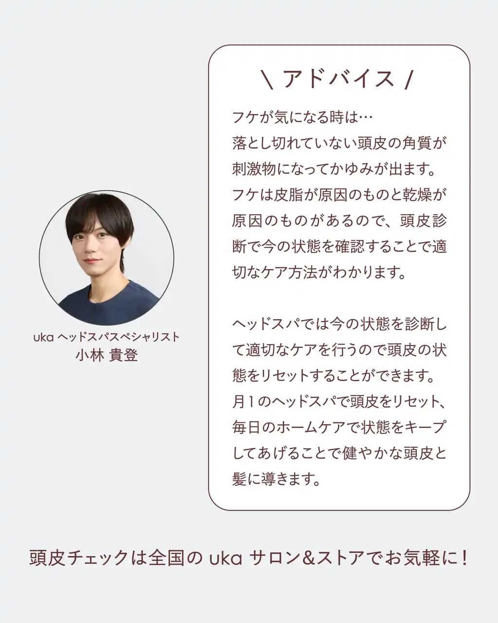 監修は、uka 東京ミッドタウン 六本木所属のヘッドスパリスト小林貴登【毛髪診断士/育毛マイスター】 |