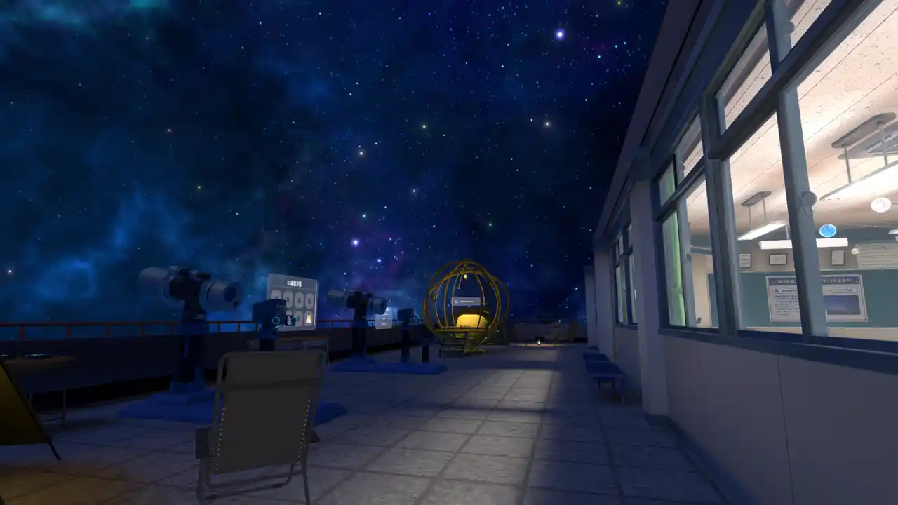 本ワールドは、「宇宙と繋がる部室」をテーマにした、会話と収集を楽しめる「チル&ゲーム」ワールドです。Meta Quest単体でも動作し、多くのユーザー様に楽しめる天体観測体験をお届けします。 |