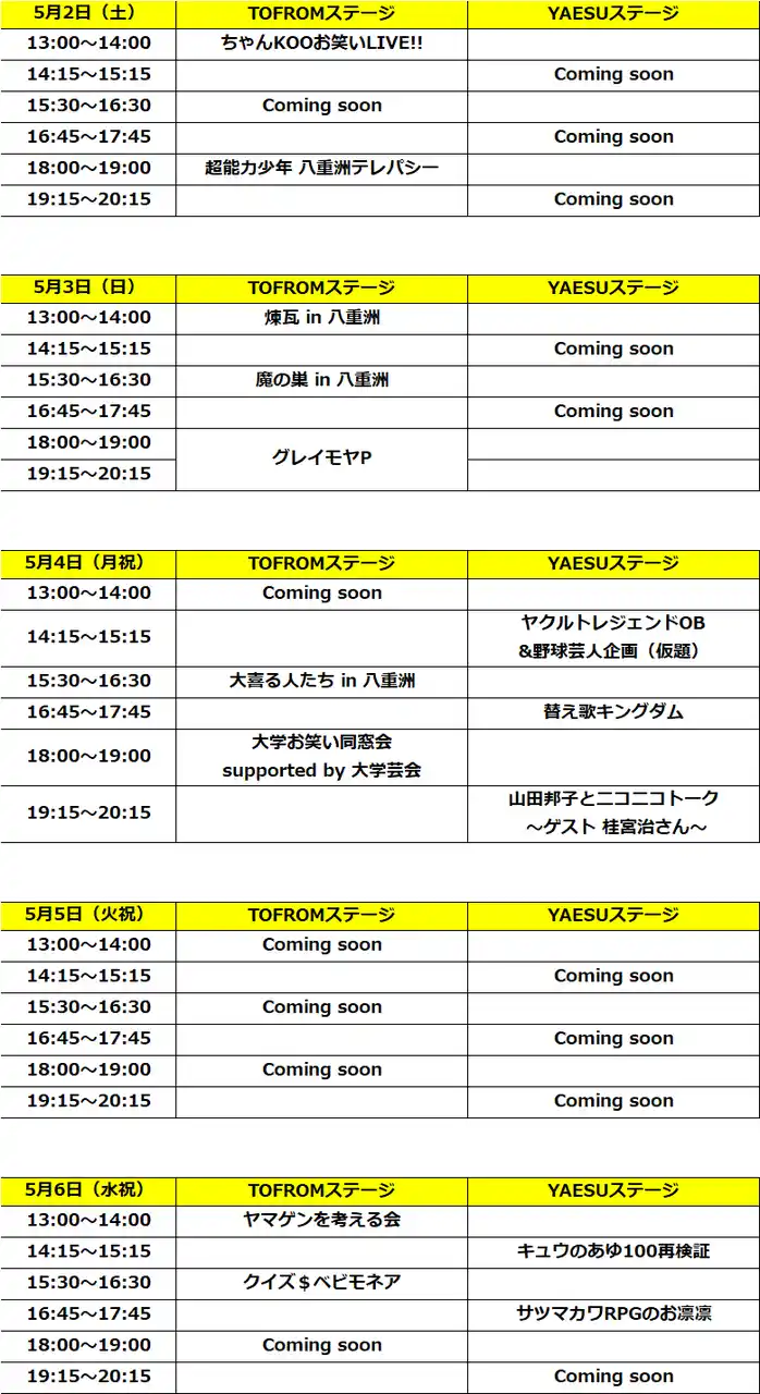 ゴールデンウィークは、笑いあふれる八重洲の新しいエンターテイメント空間へぜひお越しください。 |