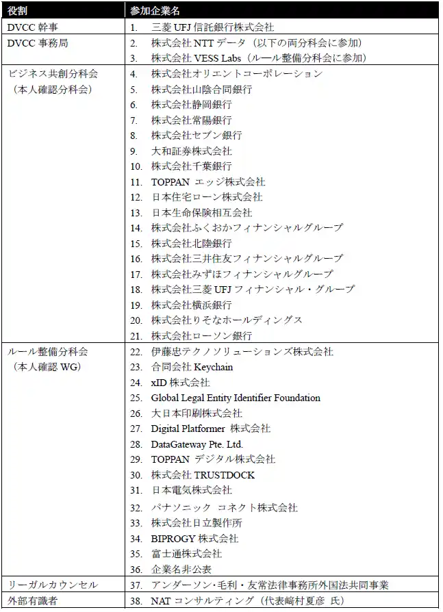 | DVCC会員企業のうち、「本人確認分科会」および「ルール整備分科会(本人確認WG)」の参加企業を中心に実証実験しました。 | |||
