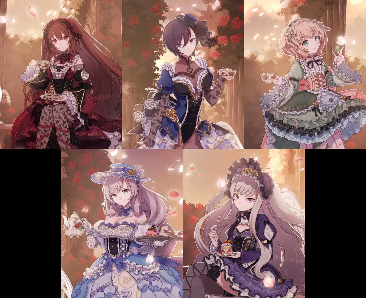 また、「優美なケーキスタンド」を集めることで、11周年衣装を纏った5乙女を獲得することができます。 |