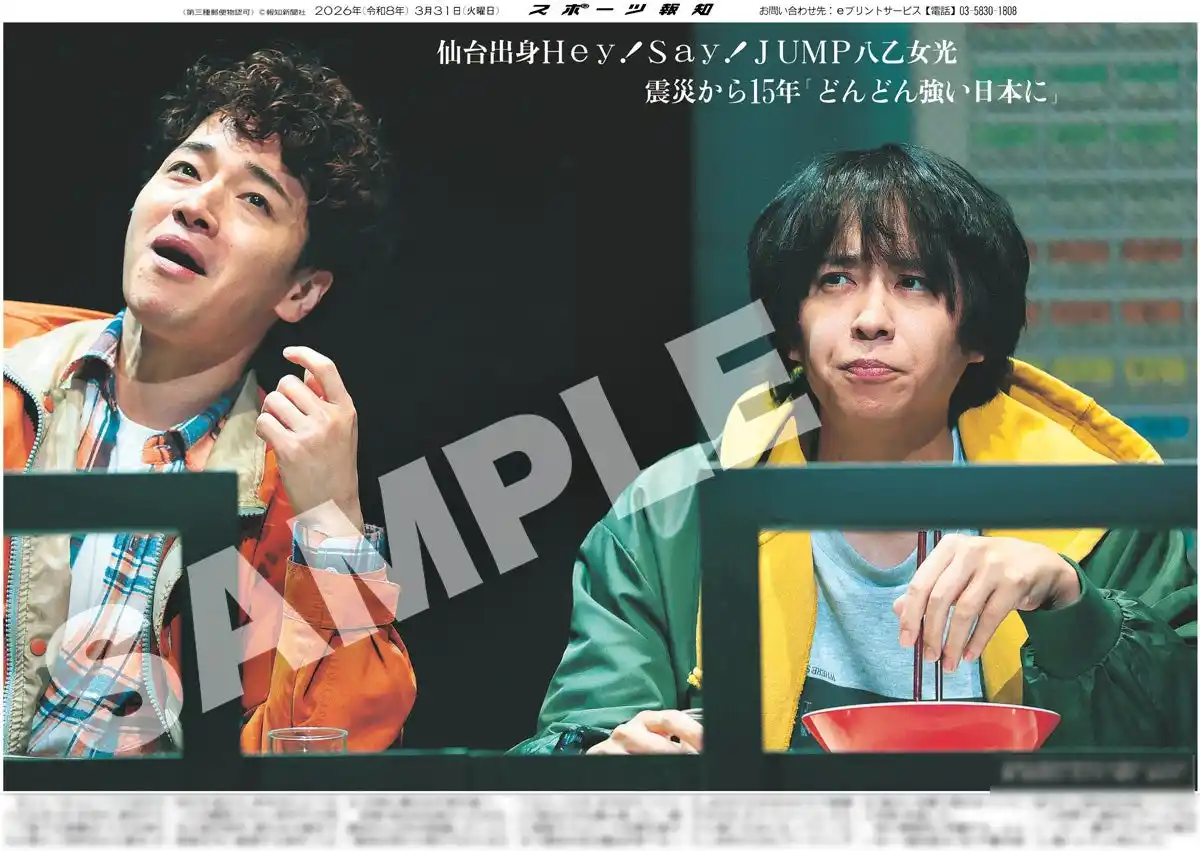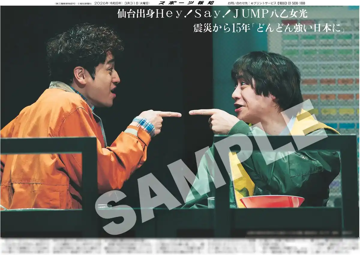 | スポーツ報知を発行する報知新聞社(代表取締役社長・長谷川剛)は新聞の一部紙面をコンビニエンスストアのマルチコピー機からプリントできる「スポーツ報知コンビニプリント」サービスを展開中。スポーツ紙ならではの大きな写真を使った紙面をプリント版として販売しています。新たに3月31日付掲載、Hey!Say!JUMPの八乙女光が東京グローブ座で開幕する主演舞台「小さな神たちの祭り」の公開ゲネプロを行った様子の紙面を発売中です。 | |||||||||