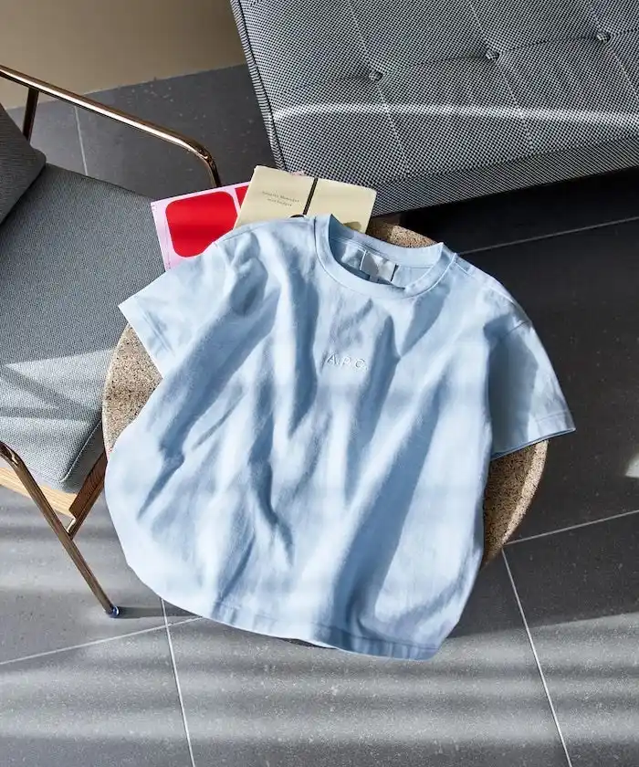 ロゴの位置や刺繍の色を別注オーダーしたA.P.C.定番のロゴ入りTシャツ。 |