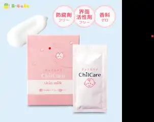 | ビー・ケースでは、二重抗原曝露仮説における肌のバリア機能の部分に着目し、保湿剤「チャイルケア スキンミルク」も開発しました。新生児の肌バリア機能は大人の半分以下なので、専門医のアドバイスを参考に必要以外の成分(界面活性剤・香料・防腐剤など)を含まず、独自の製法で保湿力を高めることに成功しました。しかも使い切りパウチの小分けタイプとし、1回量がわかりやすく、持ち運びが便利な形状にしています。 | |||||||||